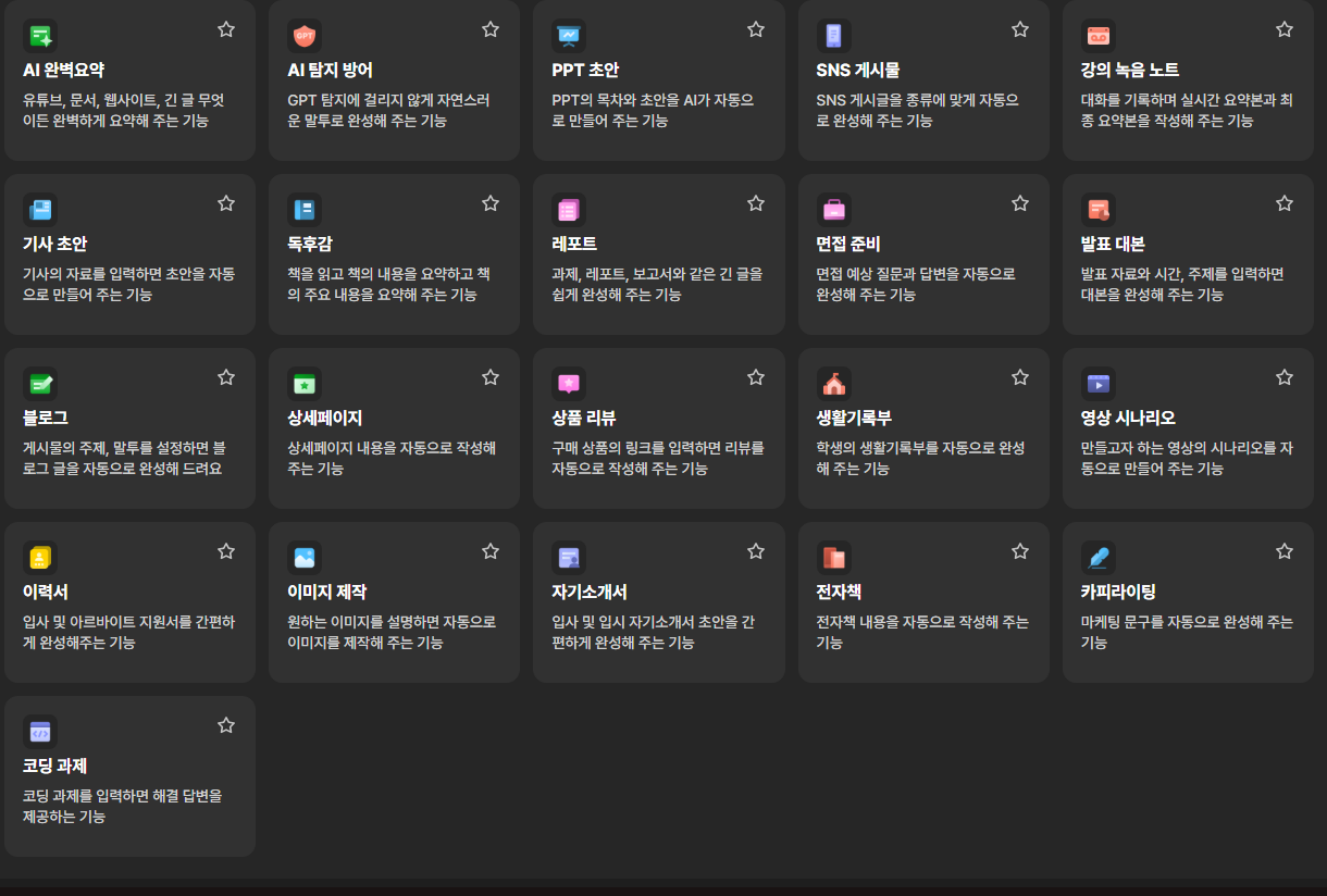 | 자기소개서 | 입시·취업 자기소개서 작성 | 자기소개 초안 생성 후 수정 |