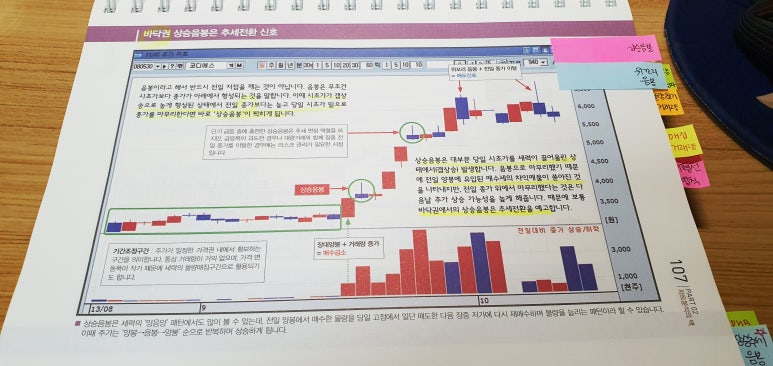 다만 본격적인 차트 분석 파트로 들어가면 내용이 상당히 깊어집니다. 기본 캔들 설명부터 시작해 주봉·월봉 차트 해석, 지지선·저항선 분석, 추세와 패턴, 거래량, 보조지표, 그리고 데이·스윙 트레이딩에 적합한 차트 세팅 방법까지 차트 관련 주요 개념이 폭넓게 다뤄집니다.